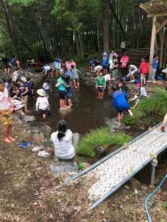 雨乞山を下山し、川遊びをしています。とても冷たい水ですが、川の中を歓声をあげながら歩いています。