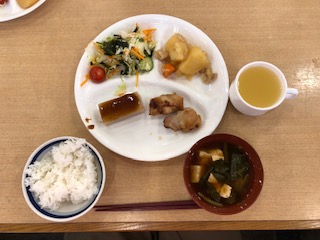夕食を食べています。たくさん歩いた後なので、朝よりも食欲がある子が多いです。