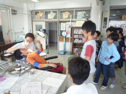 用賀小学校では、2学期にも歯科検診を実施しています。歯科校医の粟屋先生の熱心なご指導のおかげで用賀小学校の子どもたちの虫歯は年々減ってきています。