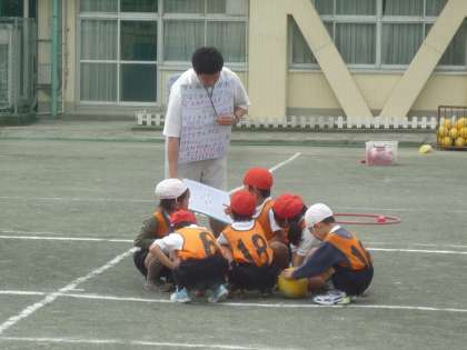 若い中学校の体育の先生ですが、小学校1年生を教えるのは初めてなので、一生懸命準備をしてくれました。