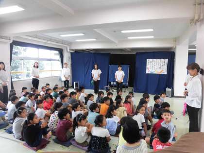 7/11 2年 お話ランド 公開日 2019/07/12 更新日 2019/07/12 学年 今日の3、4時間目はお話ランド!上用賀児童館を拠点とするお話ランドの皆様に行っていただきました。 手遊びから始まり、手作りの立体絵本、紙芝居、言葉遊びなどなど…。2年生が楽しめるようなたくさんの工夫を凝らしながらお話していただきました。 子ども達からも笑い声や感嘆の声も上がり、何ともほっこりする時間でした。 お話ランドの皆さん、本当にありがとうございました☆