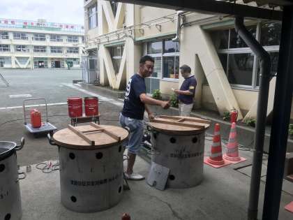 小学生がそれぞれのブースを回っている間、おや児の会の方、卒業生は夕食の準備に力を注いでいます。