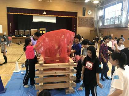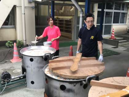 7/13 おとまりスマイル その5 公開日 2019/07/13 更新日 2019/07/13 学年 防災訓練を終え、子ども達は休憩中です。 その傍ら、おいしそうな香りがただよってきました!おいしいカレーまであと少しです。また雨のため、キャンプファイアーは体育館で行うことになりました。なんとか、気分を盛り上げようと、準備舞台が試行錯誤中です。