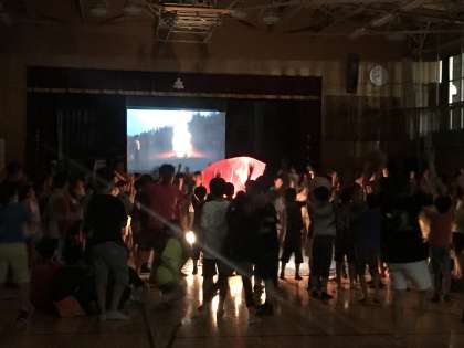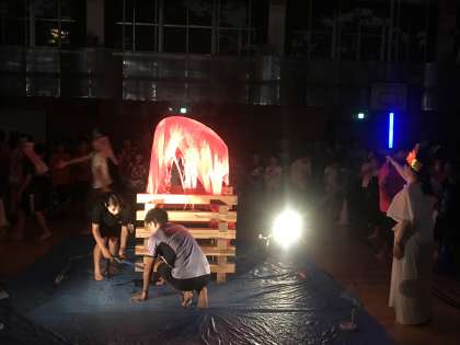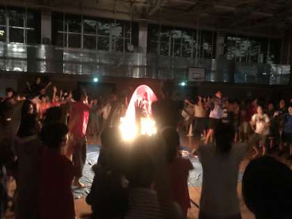 子どもたちも、卒業生も、先生たちも、歌っておどってあせだくになりながらスタンツを楽しんでいます。