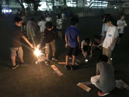花火は「今年初めてだな。」という子、「外でできてよかった。」という声が聞かれました。安全に楽しみながら、夏らしさを味わうことができました。