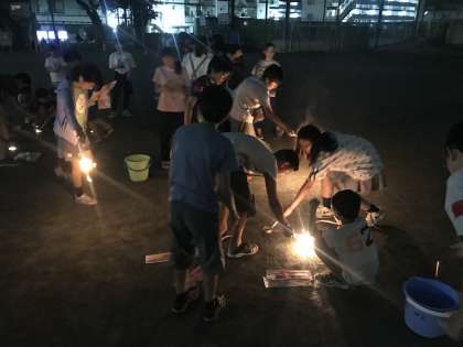 キャンプファイアーで盛り上がった後は、花火ときもだめしです。