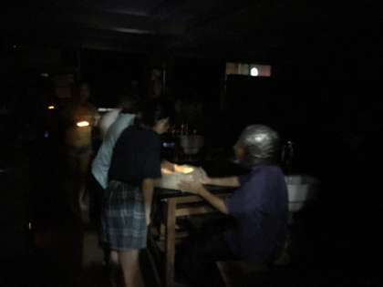 きもだめしは、4・5人のグループで真っ暗になった校内を歩きました。おや児の会の方と、中学生がそっせんして準備してくれました。三枚目の写真はきもだめしの様子ですが、あまりにも真っ暗であまりよく映りませんでした。
