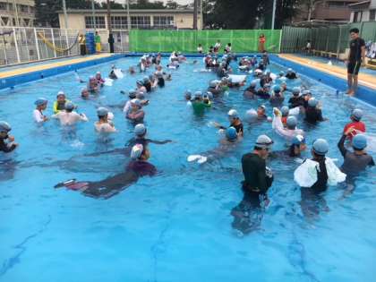 7/13 6年 着衣泳 公開日 2019/07/13 更新日 2019/07/13 学年 6年生が着衣泳をしました。水難事故に備えて、身を守るためにとりくむ活動の一つです。水着の時と服を着たとき、同じ動きをすることでその違いを学びました。 後半は、持参したペットボトルやビニル袋を使って、続けて長く浮くためにどうしたらよいか考えながら学習することができました。