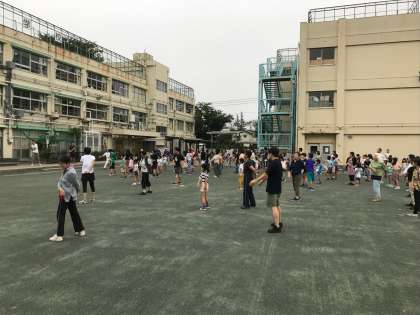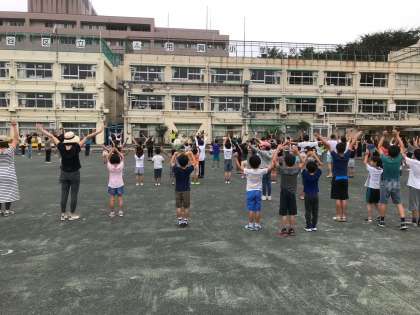 眠そうな目をこすりながら、たくさんの子供達、お家の方、地域の方、校外委員の方、そして上用賀朝会の方々が集合して行われました。
