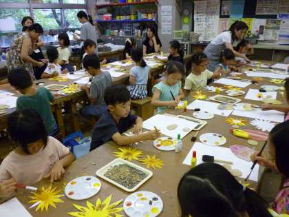 子ども達が生き生きと活動し、素敵な「ひまわり」が完成しました。みんなニコニコ笑顔で、とても素晴らしい時間となりました。講師の先生方、保護者のみなさま、ありがとうございました。