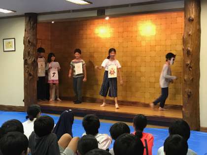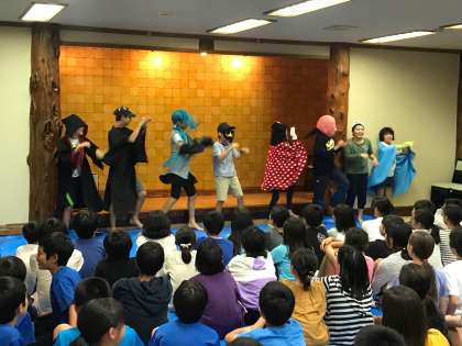 オープニングは国語で学習した「紅鯉」のパロディからスタート。発想力にビックリです。そして各班で出し物が始まりました!