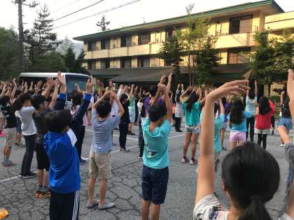 7/31 日光林間学園 その1 公開日 2019/07/31 更新日 2019/07/31 学年 おはようございます! 日光林間学園、3日目です。 昨日はたくさん歩いたこともあり、ぐっすり眠ることができた様子です。自然に囲まれた中での朝の会。3日目も互いに声をかけあいながら、良い時間を創っていきます。