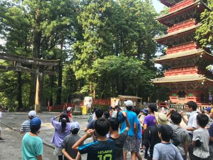 7/31 日光林間学園 その3 公開日 2019/07/31 更新日 2019/07/31 学年 日光東照宮に到着しました! 1学期の社会科では、江戸時代について学びました。家光が建てた、家康のお墓。時代の流れを感じながら、ガイドさんに説明をしていただきながら見学スタートです。