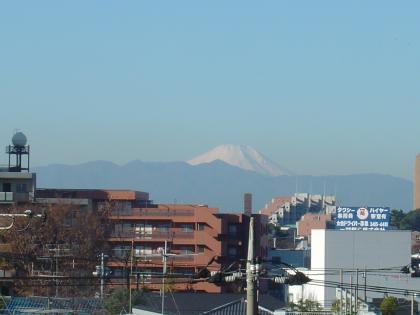 屋上に上がって見ると真っ白な雪を頂いた富士山が見えます。