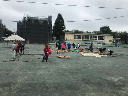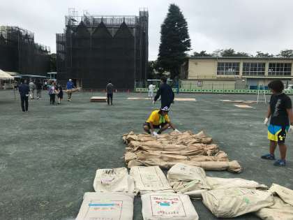> 今日は朝から地域の方々、保護者の方々、教員が集まり、準備が行われています。