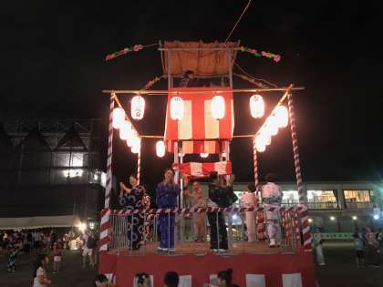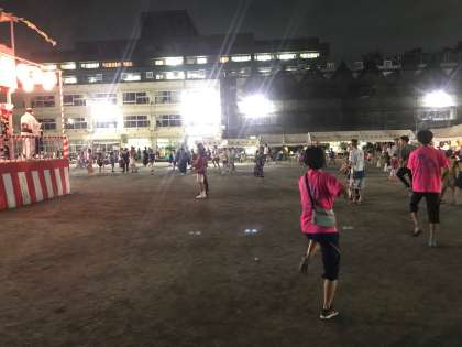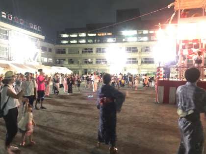 8/23 上用賀盆踊り その6 公開日 2019/08/23 更新日 2019/08/23 学年 雨の心配もなくなり、盆踊りの音楽と太鼓の音が響き渡ります。これぞ、夏祭り! 踊りの先生たちの動きを見よう見まねで一生懸命踊る子達がたくさん。その中に…校長先生や先生たちも発見! 今日のお祭りは20:30をもって終了しました。明日もたくさんの参加をお待ちしています。