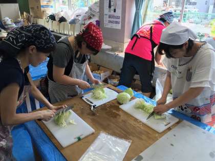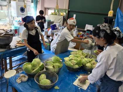 8/24 上用賀盆踊り その8 公開日 2019/08/24 更新日 2019/08/24 学年 昨日の雨で荒れてしまった校庭も、暑い中地域の皆さんが直してくださいました。ありがとうございます。 今日のお天気は大丈夫そうですね。気温が高いことが予想されます。水分補給をしながら、今日も熱いお祭りになりそうです。 写真は引き続き家庭科室です。たくさんのキャベツが、下準備されていきます。ご協力ありがとうございます!