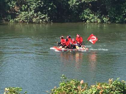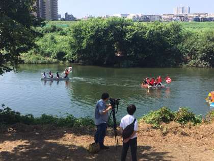 8/25 アド多摩 その2 公開日 2019/08/25 更新日 2019/08/25 学年 川下りスタート! 声を合わせ、力を合わせ、心を一つにゴールを目指します。夏休み中に試行錯誤しながら、完成させたいかだで川を下れるのは今日この日だけ! 全チームがゴールし、最後は参加者全員で記念撮影☆ナイスファイト!