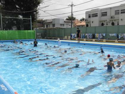 楽しかったやぐらのお祭りも終わり、後期の水泳も残り日数が少なくなっていますね。検定を明日に控える中、今日も全学年入水しました。