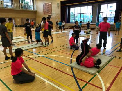 8/26 7B体育実技研修 公開日 2019/08/26 更新日 2019/08/26 学年 京西小学校に7ブロックの教員が集まり、体育実技研修が行われました。 体育の授業を充実させるためのちょっとした工夫や場のつくりについて学びました。種目はサッカーとマット運動。二学期の学習にいかすヒントを得ることができました。