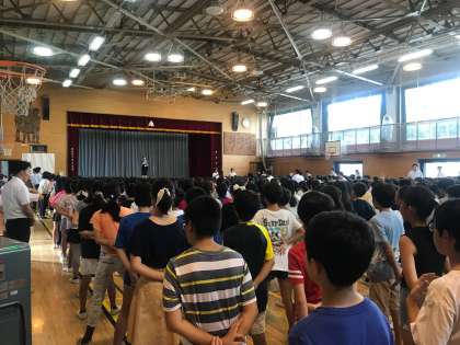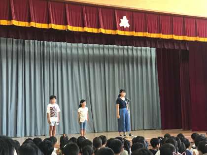 9/2 始業式 公開日 2019/09/02 更新日 2019/09/02 学年 元気な子供達の声が出て学校に戻ってきました! 始業式は体育館にて行われました。 校長先生のお話の後、2.4.6年生の児童代表が、二学期の意気込みを堂々と伝えることができ、全校児童のスイッチをONにすることができました。 まだまだ暑い日が続きそうです。 実り多き二学期になるように。明日もまた元気な挨拶とともに会えること、楽しみにしています。