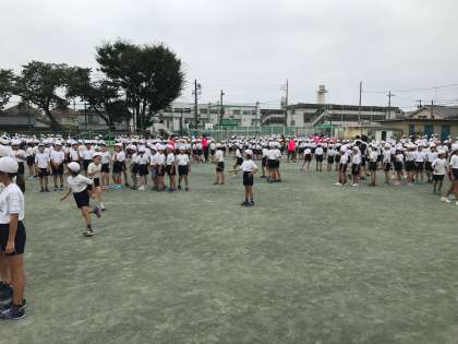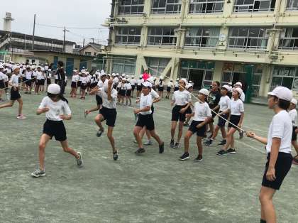 9/5 体育朝会 長縄 公開日 2019/09/06 更新日 2019/09/06 学年 全校児童が集まり、今年度1回目の長縄朝会がありました。 各クラス、声をかけあいながら、一生懸命跳ぶことができていました。1ヶ月後には第2回が予定されています。各クラス、目標を設定し、目標達成に向けて取り組んでいきます。