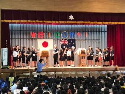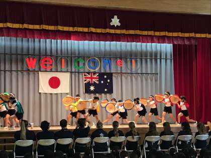 また和太鼓クラブによる演奏に加え、バンバリーの方々には音楽に合わせて体験もしていただきました。最後はきらきら星とメリーさんの羊を日本語と英語で歌いました。お礼にバンバリーの子達もステキな歌声をプレゼントしてくれました。