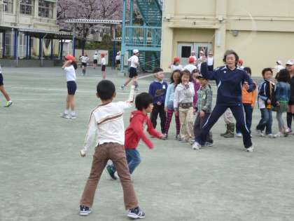 今年から始まった土曜授業日の朝は、担任の先生と子どもたちが一緒に遊ぶ「わくわくタイム」です。
