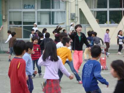 天気予報は雨でしたが、曇天の中ほこりもたたない校庭で思いっきり遊んでいるクラスがたくさんありました。