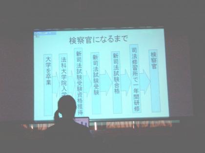 子どもたちは、昨年まで一緒に過ごしていた中一の先輩が、総合的な学習の時間などを使って、職業について調べて作ったプレゼンを真剣な顔つきで聞いていました。