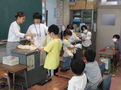 そんな一言から始まった今回の授業。身の回りにある点字ブロックやスロープがどんな人にためにあるのかクイズを出していただいたり、目が見えにくい人や手先があまり器用ではない人の体験をさせていただいたりしました。
