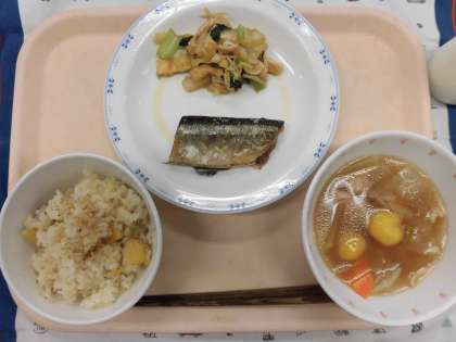 今日は、10月11日の行事にちなんだ献立にしました。そこでクイズです。11日は、何の日でしょうか?