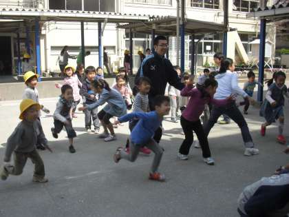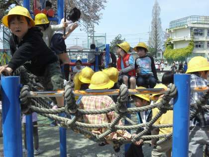 4/15 1年生校庭遊びデビュー 公開日 2011/04/15 更新日 2011/04/15 校長室より 今日から1年生が校庭遊びにデビューしました。担任の先生と「だるまさんが転んだ」や「はないちもんめ」をしたり、アスレチックで遊んだりと、まだまだ遠慮気味なところもありますが、校庭で遊びはじめました。用賀小学校の体力づくりの原点は校庭遊びですので、これからどんどん遊んで欲しいなと思っています。