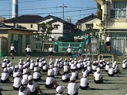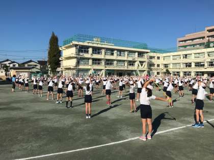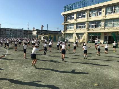 11/6(水) 低学年 短縄朝会 公開日 2019/11/06 更新日 2019/11/06 学年 穏やかな日差しの中、短縄朝会が行われました。今日は1.2.3年生が集まり、準備運動からスタートです。 運動委員会の5.6年生がお手本を示しながら、前跳び、駆け足跳び、前ふり跳びに挑戦!最後は音楽によって跳び続けました。 少しずつ季節の変化を感じる季節となりました。短縄で体を温めるのにピッタリの季節でもあります!