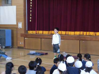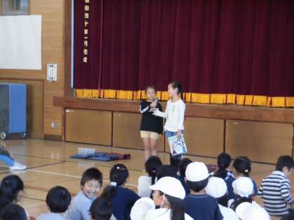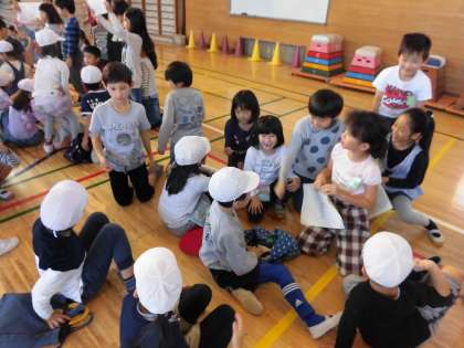 11/12 2年 小小交流 その1 公開日 2019/11/13 更新日 2019/11/13 学年 ようがの学び舎では、毎年小学校同士の交流が行われています。2年生は今年、京西小学校のお友達を招いて、昔遊びを行いました。 はじめの会の司会から行い、はじめのことば、京西小学校のお友達からの挨拶などを済ませたら、お互いに自己紹介&握手でスタート! 知っている子も中にはいるようで、「久しぶり!」「元気だった?」や、「今日はよろしく!」などの声が交わされながら、始まりました。