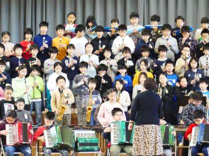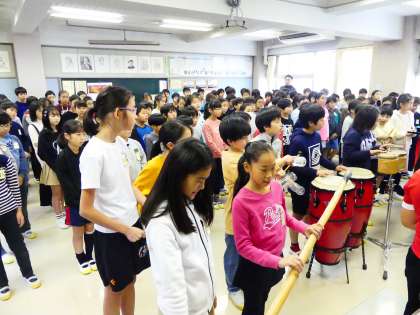 今日は音楽朝会で5年生が発表しました。「雨の音楽」「ハンガリー舞曲第5番」を演奏しました。いろいろな雨があります。しとしと降る雨、ぽつぽつ降る雨、ざあざあ雨。マラカスやレインスティック、また空き缶やペットボトルなどを使って雨の音を表現します。「ハンガリー舞曲」は、曲想の変化を感じて練習してきました。みんなで呼吸を合わせることの難しさ、そして楽しさ、練習の間にはたくさんの経験してきました。今後も今日の経験を生かして頑張っていきます。