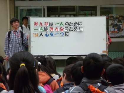 帰校式では、一人はみんなのために・・・の言葉が終わりに響きました。