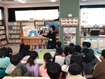 12/4 4年 図書 公開日 2019/12/05 更新日 2019/12/05 学年 用賀小学校の図書室には、学校図書館司書がいます。 授業のときには、図書室の使い方を教えてくれたり、新刊本の紹介をしてくれたりします。 本日の授業では、『ヤクーバとライオン』を読み聞かせしてくださいました。ラストでのヤクーバの判断に一人ひとり考えるところがある作品でした。子どもたちは興味をもって、じっと聞き入っていました。