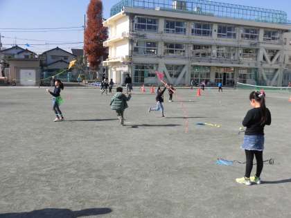 12/14 ふれあい広場 公開日 2019/12/14 更新日 2019/12/14 学年 今日のふれあい広場は町会長の金子勝治様を講師に、たこ作りを行いました。世界で一つだけのマイたこを作製し、できた子達から校庭で飛ばしました。お天気にも恵まれ、楽しく飛ばすことができました。 金子町会長をはじめ、お手伝いいただいた保護者の皆様、ありがとうございました。