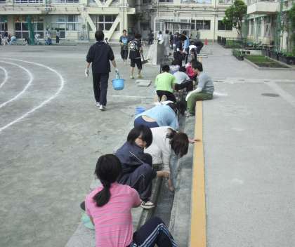 毎年、参加人数が多くなってきていて、学校を支えてくださる方々の熱意を感じ感激しております。毎年1回のこの清掃のおかげで、雨がやむとすぐに校庭が使える状況になっております。6月4日の運動会に向けても最高の環境をつくってくださいました。本当に感謝申し上げます。
