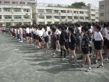 5/2 全校朝会〜チームワークの大切さ〜 公開日 2011/05/02 更新日 2011/05/02 校長室より 今日の全校朝会では、4年生の遠足(高尾山登山)を例にあげて話をしました。きつい山登りですが、疲れた友達の荷物を持ってあげたり、手をつないで励まし合い助け合いながらがんばっていた姿を話し、チームワークの大切さについて、改めて考えさせました。 1年生の朝会での姿勢もさらに良くなっています。