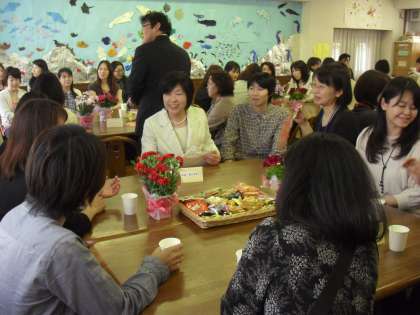 離任式のあとには、ランチルームでPTA主催の歓送迎会が行われました。本当にたくさんの方々が来てくださって、思いの詰まった会となりました。PTA役員の皆さん、このような会を設定してくださりありがとうございました。