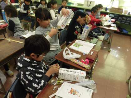1/17 2年 国語「紙パックで、こまを作ろう」