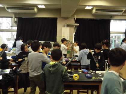 1/17 科学クラブ「バチッと決めよう静電気 その1」 公開日 2020/01/19 更新日 2020/01/19 学年 今学期初めての科学クラブは、静電気シリーズの第一弾!塩ビパイプに電気を溜めて、スズランテープで作ったクラゲを浮かせよう、という内容です。 塩ビパイプに電気が溜まるとパチパチと音が鳴ったり、実際にクラゲが浮くと「浮いたー!」と喜んだり、様々な経験をすることができました。