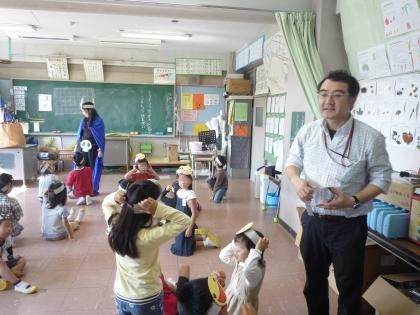 『やさいだいすき』の単元はキラリ健康カリキュラムで作った1年生の食育です。ベジレンジャーの登場であくだま菌から逃れた子どもたちが野菜大好きになる授業に、子どもたちは歓声を上げて取り組んでいました。