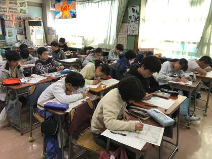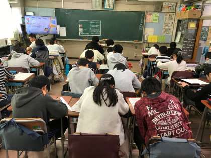 6年生が真剣な表情で書いているのは…卒業文集です。6年間の思い出や成長を一枚の紙にギュと詰めて書いています。