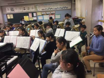 1/30 キッズバンド 公開日 2020/01/30 更新日 2020/01/30 学年 キッズバンドは、週に3回の朝練習、木曜日、土曜日の放課後に練習をしています。パートごとに6年生がリーダーとなり、下級生に教えている姿も多く見られます。 さて、2月15日の土曜日に管楽器発表会があります。発表の日が近づくにつれ、練習にも熱が入ってきています。6年生にとっては、最後の管楽器発表会。全員で気持ちを一つにして、本番の日を迎えてほしいと思います。頑張れ!キッズバンド!