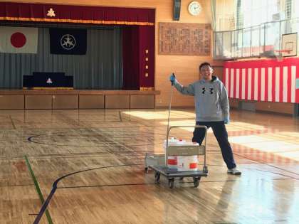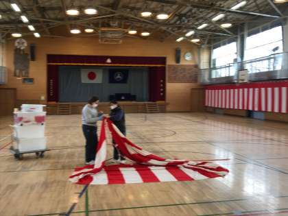 3/18 主事さんの技 公開日 2020/03/18 更新日 2020/03/18 学年 主事さん方が中心になり、卒業式の会場準備が始まっています。幕を張り、床にワックスをかけてくださっています。 体育館はもちろん、校内の廊下やトイレもピカピカです。ぜひ登校したときに、心を込めてお仕事している姿を想像してみてください。