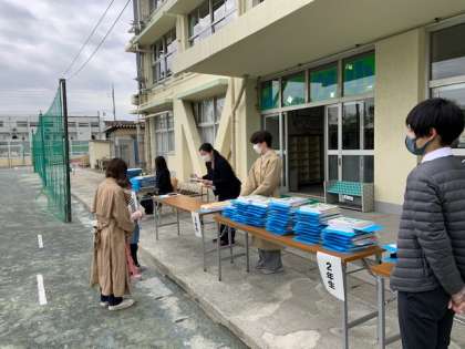 ご協力ありがとうございました。 公開日 2020/04/17 更新日 2020/04/17 校長室より 教科書配布が終了しました。ご家庭の皆さんのご協力により、無事に終了することができました。これからの受け取りの方にも確実にお渡ししたいと思います。全国規模での緊急警戒宣言となりました。子供たちも辛い状況とは思いますが、ここが一番堪える時期だと思います。3つの密とならない生活をして、早くこの状況から抜け出せるように手を携えて頑張りましょう。
