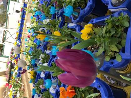 秋に植えたパンジーとチューリップがきれいに咲いています。